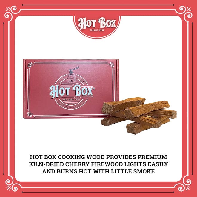 Looking to add a sweet, fruity flavor to the pizzas you make in your portable pizza oven? Produce gourmet-quality pizzas like a pro with Hot Box 6″ Cherry Cooking Wood. Cherry wood is beloved for the subtle, rich and fruity flavor it adds to wood-fired pizzas. It also pairs well with poultry, pork and beef and balances perfectly with oak, hickory, maple or pecan wood. At 6″ long and 1-2 inches in diameter, this wood fits easily into smaller portable ovens. The sustainably-sourced, kiln-dried wood produces hot and clean single-match burns, free of pests and mold. The 100% resealable and recyclable box houses enough wood to cook up to 20 pizzas.