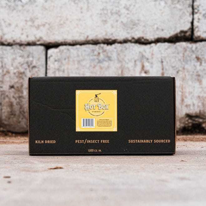 Hot Box Oak Cooking Wood is cut into 8-inch pieces to easily fit in pizza ovens and smokers. This restaurant-quality premium oak wood produces a long, scorching burn and subtle smoky flavor perfect for wood-fired pizzas. And because it comes 100% kiln-dried for incredibly low moisture content, Hot Box Cooking Wood creates a clean burn with no pests or mold every time. All Hot Box wood comes sustainably sourced in a 100% recyclable and resealable box that contains 1300 cubic inches of wood.
