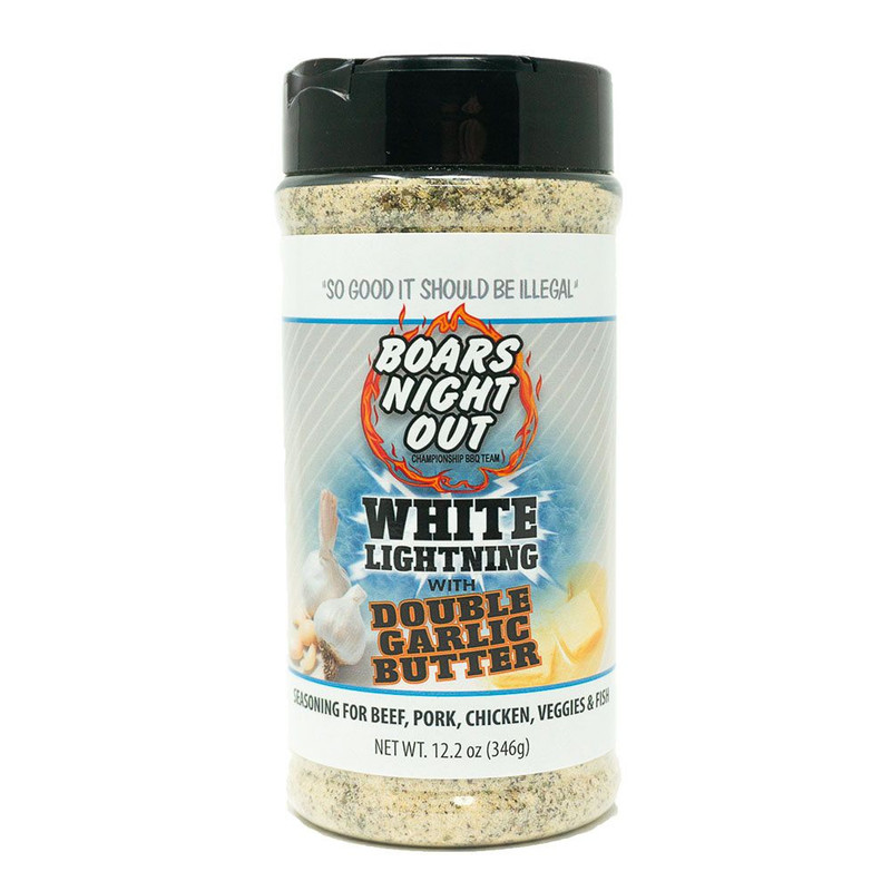 Boars Night Out White Lightning with Double Garlic Butter uses the base of the original Boars Night Out’s seasoning and adds in double the garlic and a touch of butter to take it over the top. Like the original but oh so much better, this one has to be tried to upgrade your next steak or burgers. This works well on anything that loves double the garlic and dried butter buds.