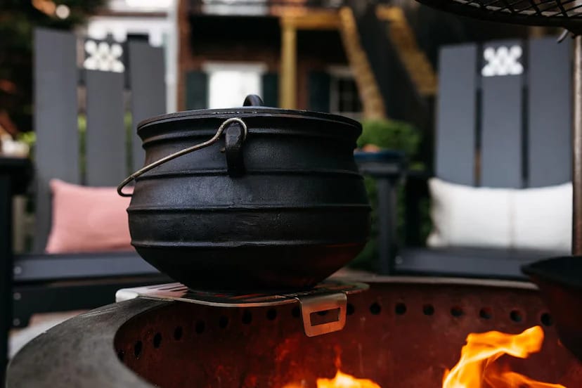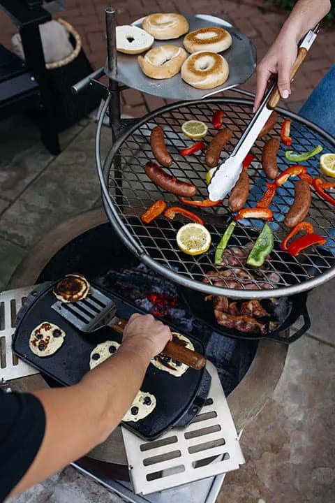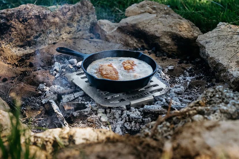NOTE: Parts of the Skillet Rest can get very hot when over the fire, use high-quality fire-protective gloves when handling.