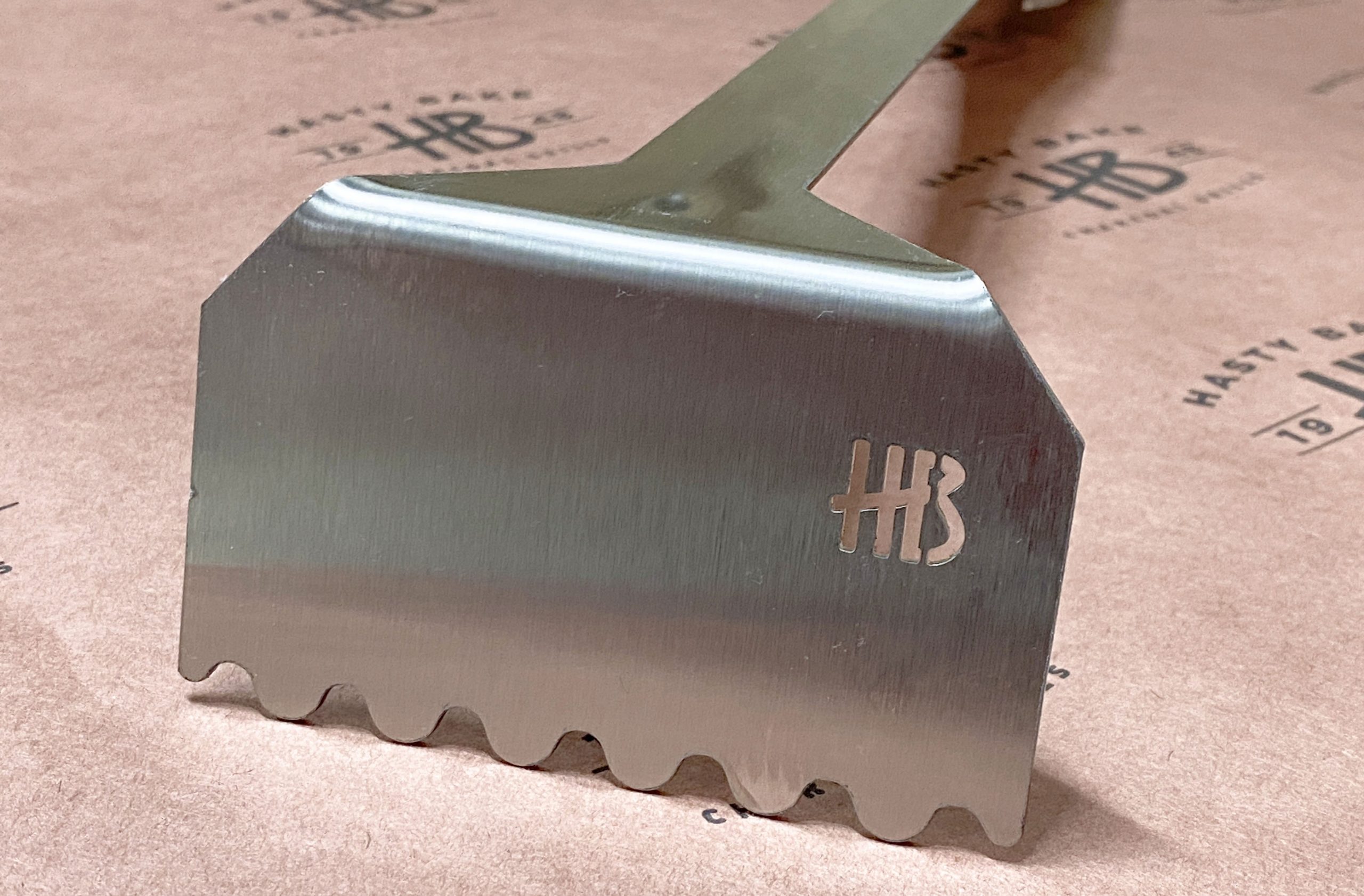 A clean grill grate ensures that your food is not only tasty, but doesn’t stick to the grate, and has proper metal contact to achieve the best sear. Traditional wire brushes wear down quickly, and bristles can fall out and get stuck on the grates, embedding in your food and endangering you and your family. Hasty Bake has developed a stainless steel scraper that allows you to keep your grates clean, safe, and much more. With a formed scraper head that perfectly matches the angled grate pattern on both their large and small grills, you ensure that your grates are as clean as they can be.