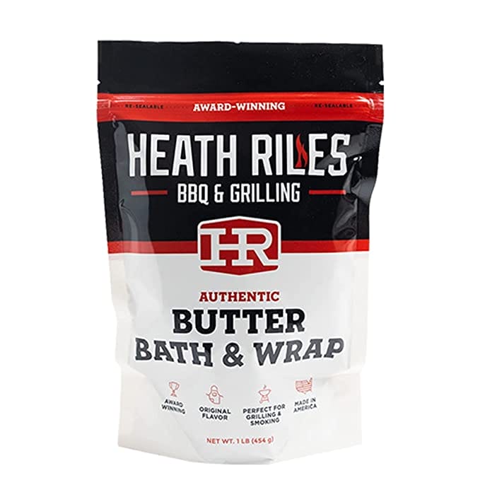 Whether you’re a trophy-winning pit master or an avid at-home griller, Heath’s Butter Bath & Wrap will keep your ribs and pork fall-off-the-bone tender and packed full of flavor. Add water or apple juice to their pre-made mix, shake well, and pour onto your ribs or pork — it’s that easy.  The brown sugar, butter flavor, and unique blend of spices were a key part of our 2022 Memphis in May Rib Championship win.  There’s nothing else like it on the market!