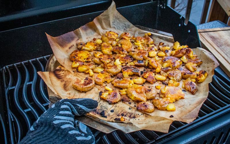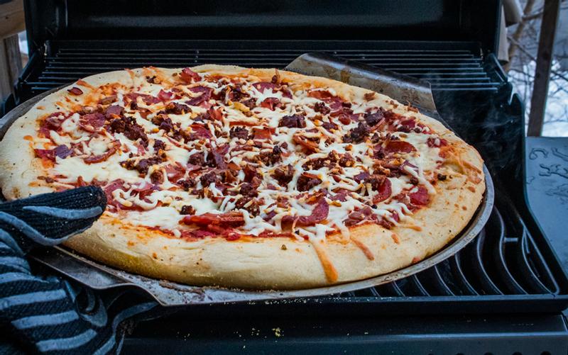 Easily bake perfect pizzas using the Napoleon 14-inch (35.5 cm) Stainless Steel Pizza Pan. The iconic WAVE™ perforation pattern provides optimal airflow resulting in evenly crisped pizza. This dishwasher safe pan heats fast and evenly, acting like a shield to prevent burning, encouraging a thoroughly cooked pizza. The built-in handles allow you to safely move the pizza to and from the grill.