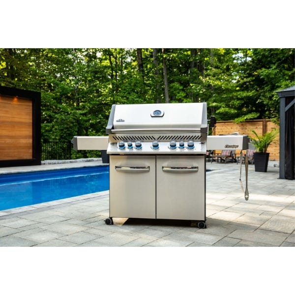 The Napoleon Prestige® 665 Propane Gas Grill with Infrared Side and Rear Burners is the total grilling package; constructed from high-quality stainless steel, this cart model has the capabilities of a full outdoor kitchen.