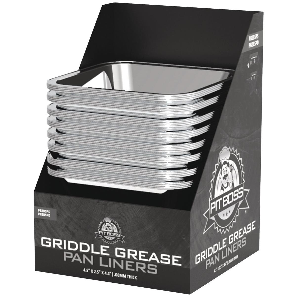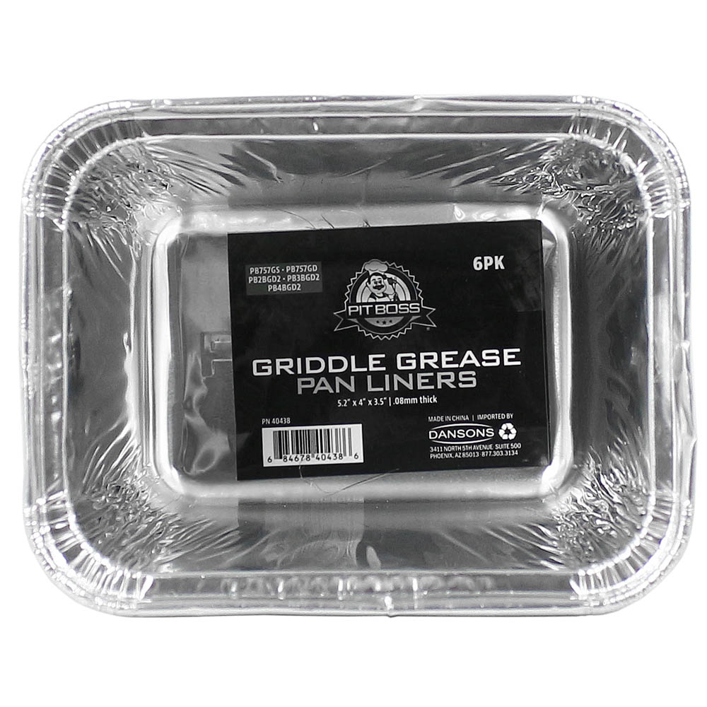 Pit Boss Foil Griddle Grease Pan Liners PB757GS/GD PB2/3/4BGD2 6 Pack 40438 Pit Boss Foil Griddle Grease Pan Liners are here to give you a clean and easy griddle experience! No need to worry about cleaning your grease tray each time you use your griddle – simply insert one of these pans into your Pit Boss PB757GS/GD or PB2/3/4BGD2 griddle grease tray and dispose when finished.