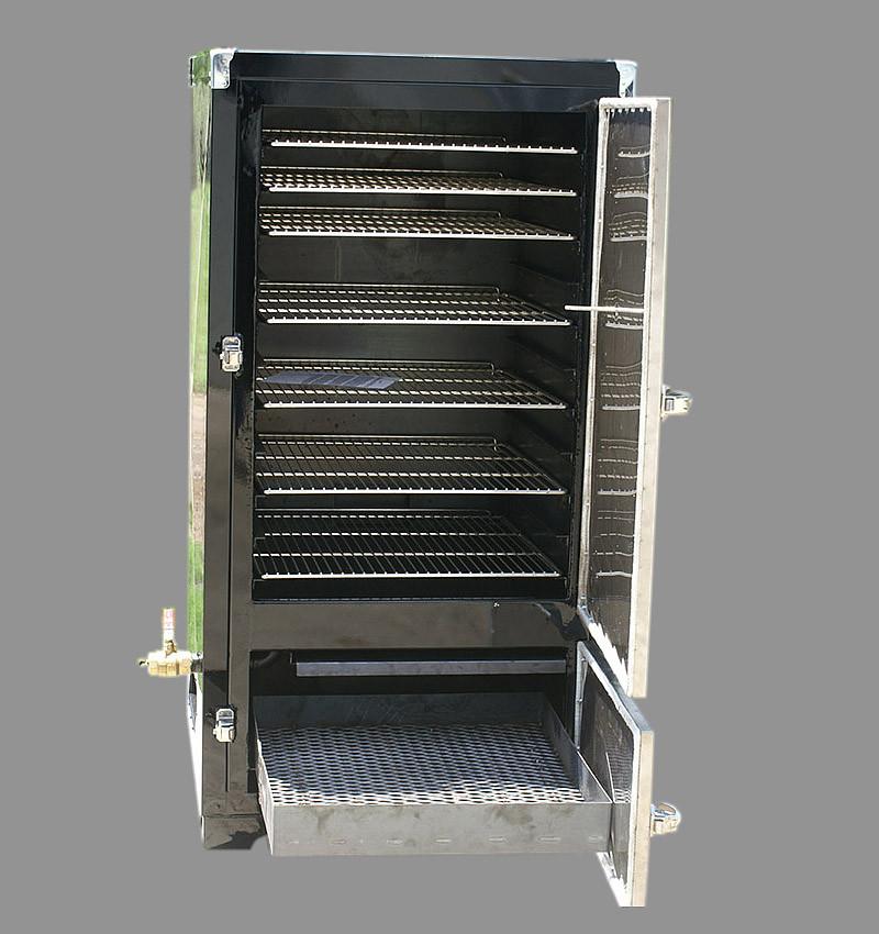 This is, simply put, a monster cooker built for professional BBQ chefs and caterers. This unit is ideal for small businesses that need a large capacity cooker to keep up with the demand. This unit is not for the faint of heart! The cooking surface area of this cooker is 35 Square Feet! The standard Professional comes with stainless doors and standard smoke stack.