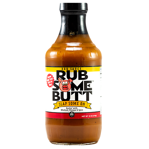 Rub Some Butt BBQ Sauce features a mustard base, complemented with apple cider vinegar, molasses and spices.