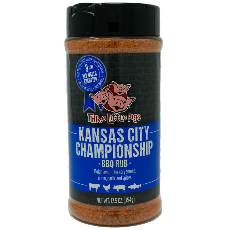 Three Little Pigs Championship BBQ Rub by Chris Marks is always a balanced mix of sweet and spicy ingredients that provide a mega-flavor boost. Kansas City Championship BBQ Rub is ideal for all kinds of meats, soups, chili, veggies, baked potatoes, and anything else that needs a boost of flavor! Backyard grillers and BBQ pitmasters alike trust Three Little Pigs for competition-quality results every time.
