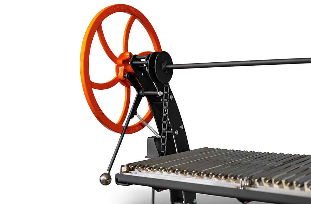 • The 12-gauge stainless steel V-Channel grates direct grease and drippings away from the flame and are height adjustable via the heavy-duty chain drive with 15” of variable travel. This means more precise temperature control allowing the cook to manage the heat level and ensure the meal is cooked to perfection more easily.