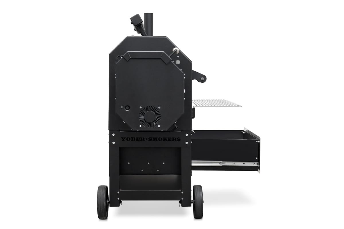 Introducing the perfect solution for storage, the full depth Yoder Smokers Storage Drawer System. The storage drawer holds up to 75lbs and adds over 2,400 square inches of storage space for the YS480 and 3,600 square inches for the YS640. Now you have room for all of your grilling essentials, from tongs and spatulas to meat thermometers, gloves, and grill brushes. It can even store grill grates, the Yoder Smokers cast iron griddle, and the Wood-fired Oven. All your essentials can be neatly arranged and easily accessible, and all within arm’s reach. And it can be added to any standard cart YS480 or YS640 pellet grill. Crafted from high-quality materials, the Yoder Smokers Storage Drawer is built out of 16-gauge steel and finished in a 1200-degree powder coating. The drawer front is 304-stainless steel, and all hardware is stainless-steel. The storage drawer system also incorporates a drip rail across the entire face to help prevent water intrusion and to help keep the stainless steel front free of drips that occur while cooking. Built with a level of quality that is synonymous with Yoder Smokers, the new storage drawer is designed to last a lifetime.